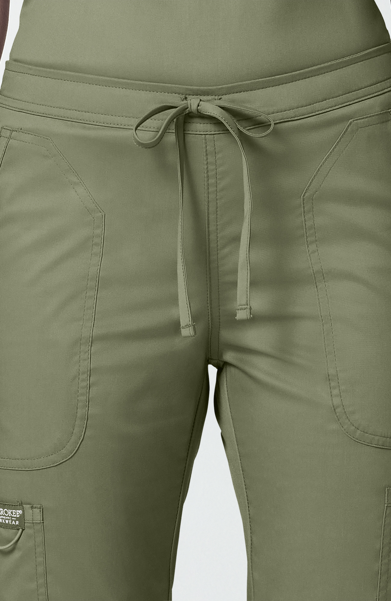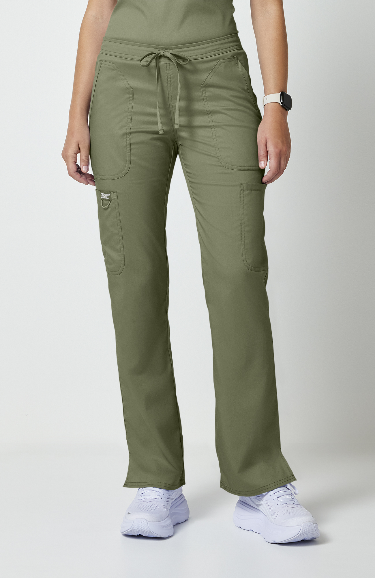 Pantalón médico para mujer CK WW Revolution, tiro medio, pierna ligeramente acampanada y cintura con cordón funcional.