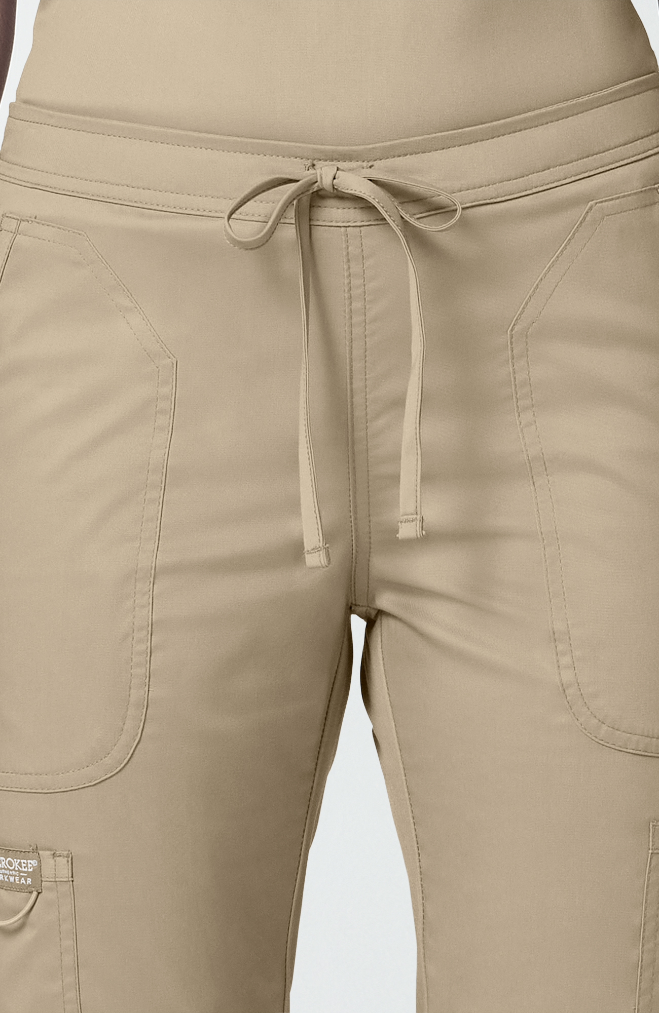 Pantalón médico para mujer CK WW Revolution, tiro medio, pierna ligeramente acampanada y cintura con cordón funcional.
