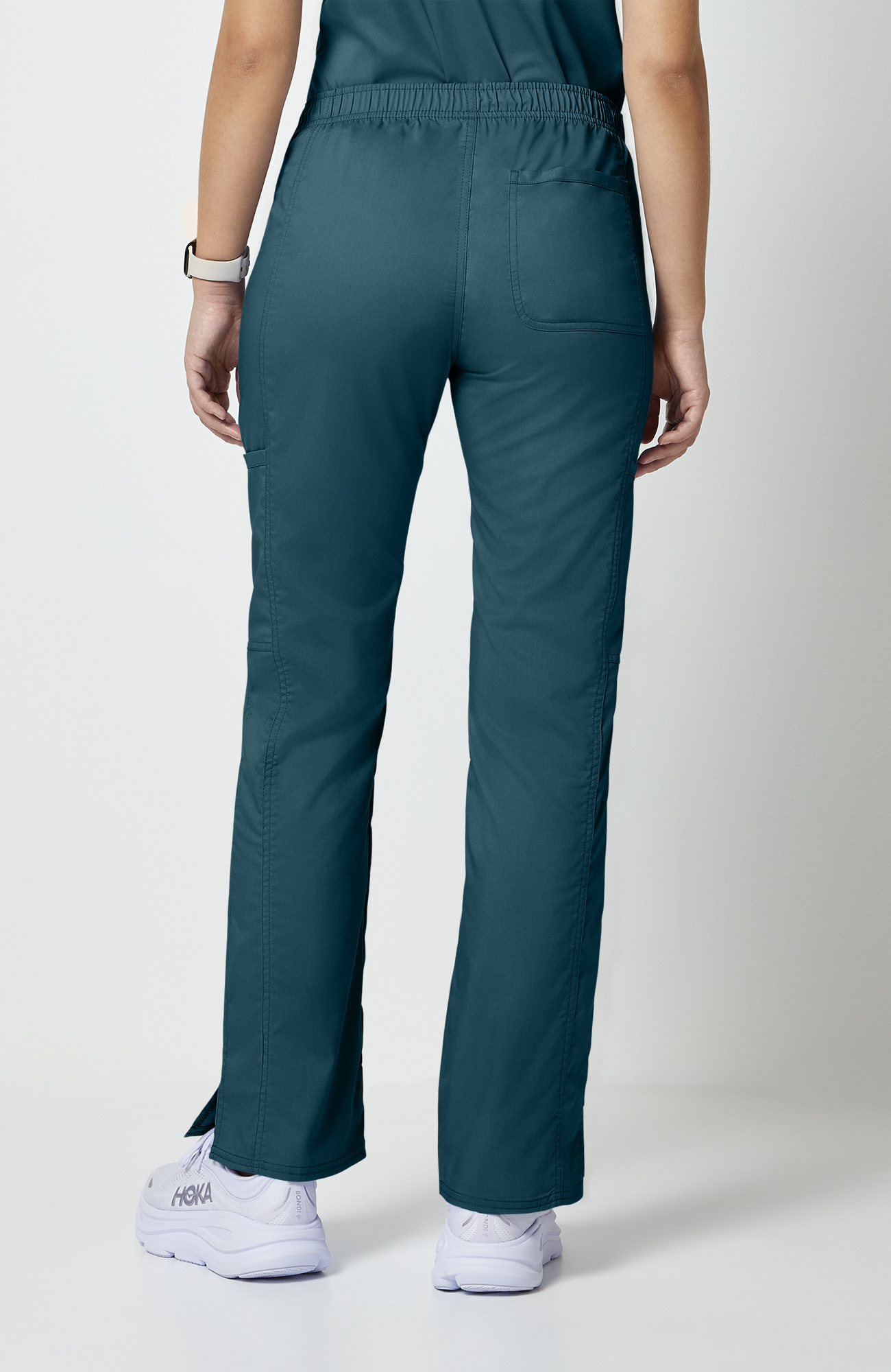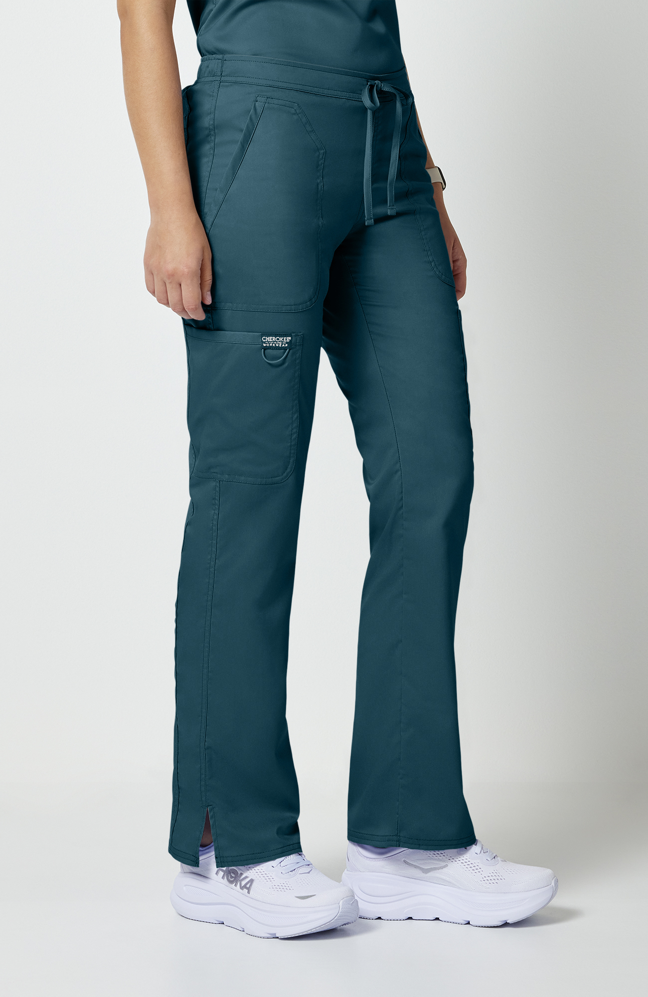 Pantalón médico para mujer CK WW Revolution, tiro medio, pierna ligeramente acampanada y cintura con cordón funcional.
