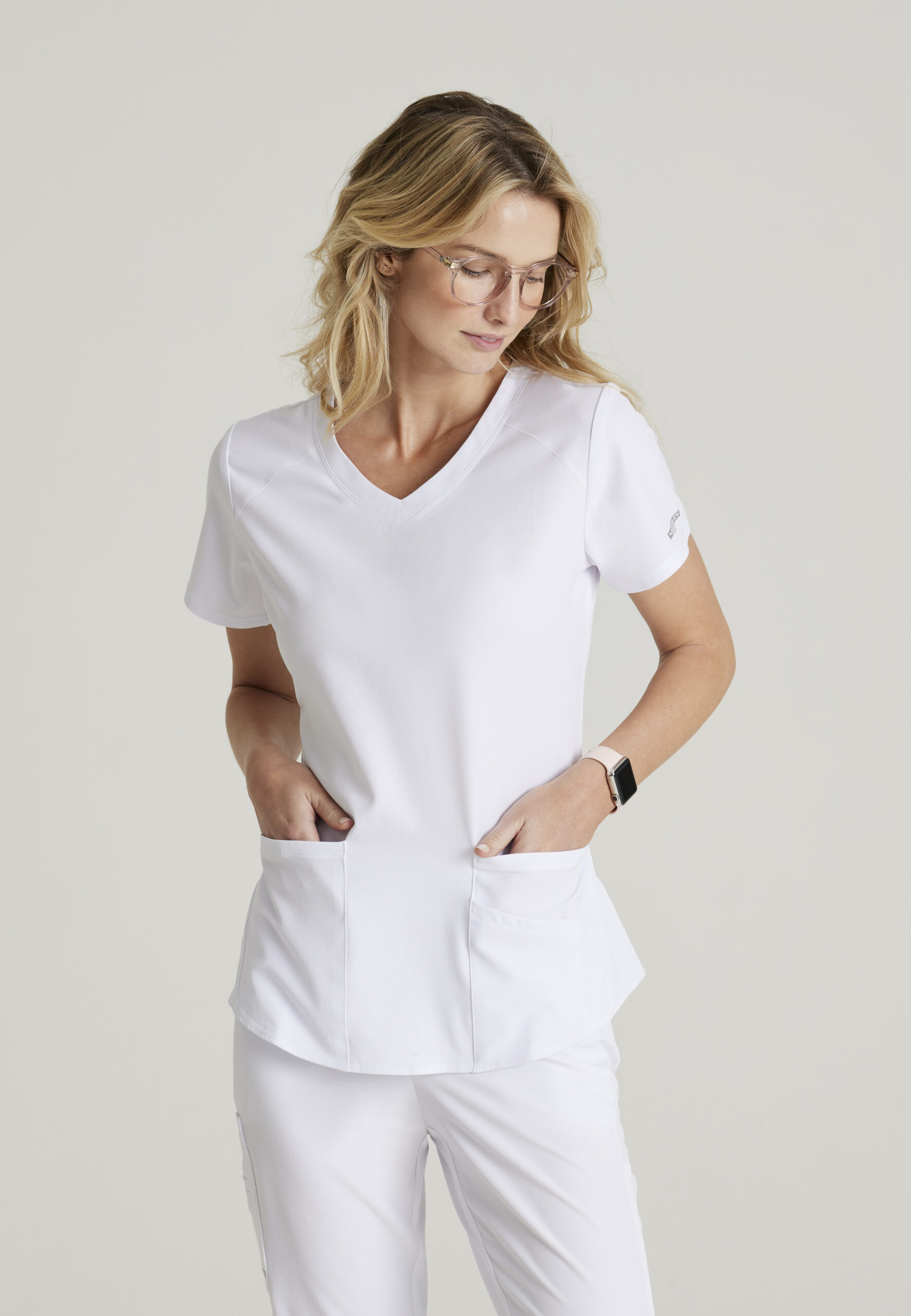Blusa médica para mujer Skechers™ by Barco, ajuste moderno, cuello en V y 3 bolsillos.