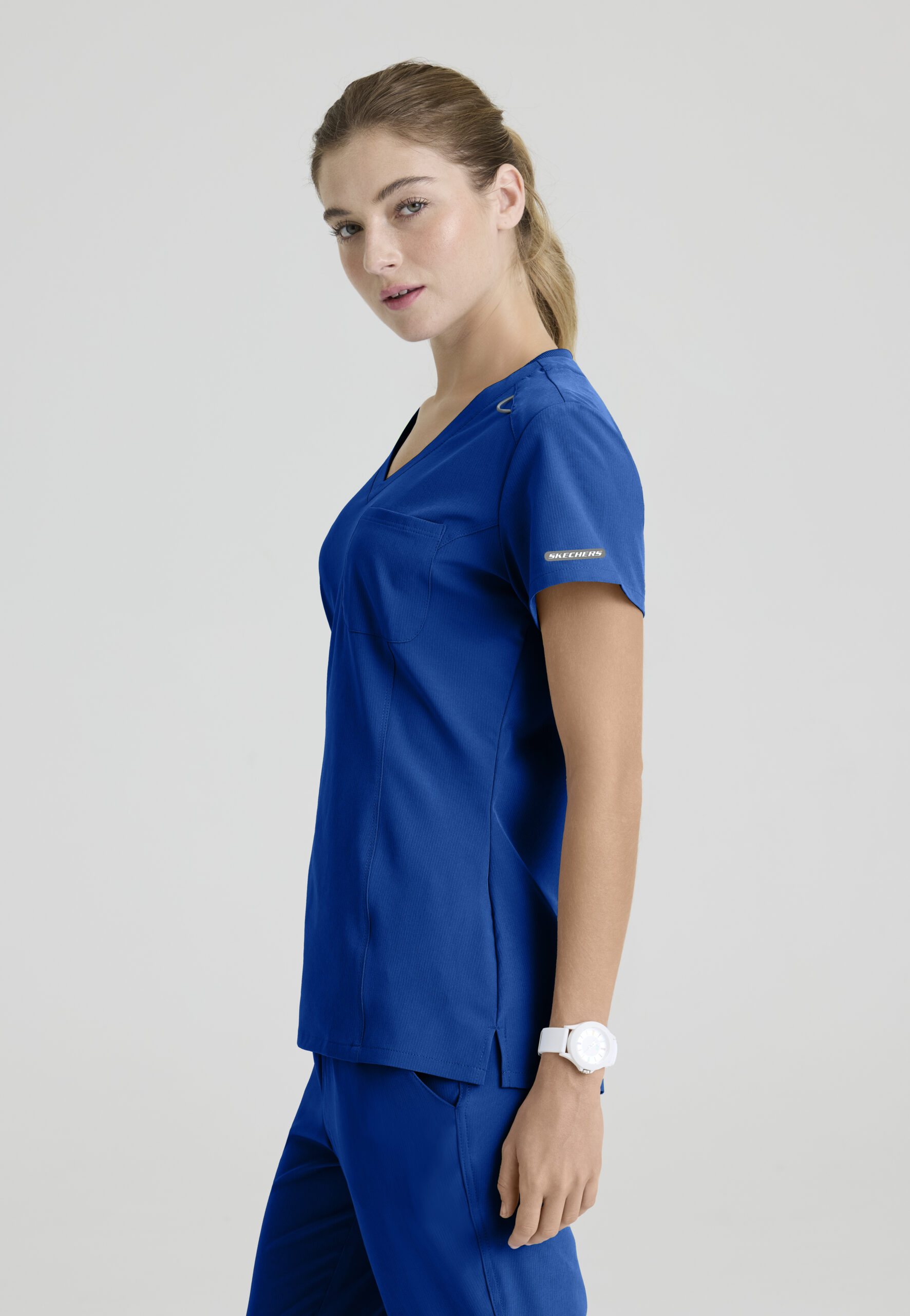 Blusa médica para mujer Skechers™ by Barco, ajuste moderno, cuello en V y 3 bolsillos.